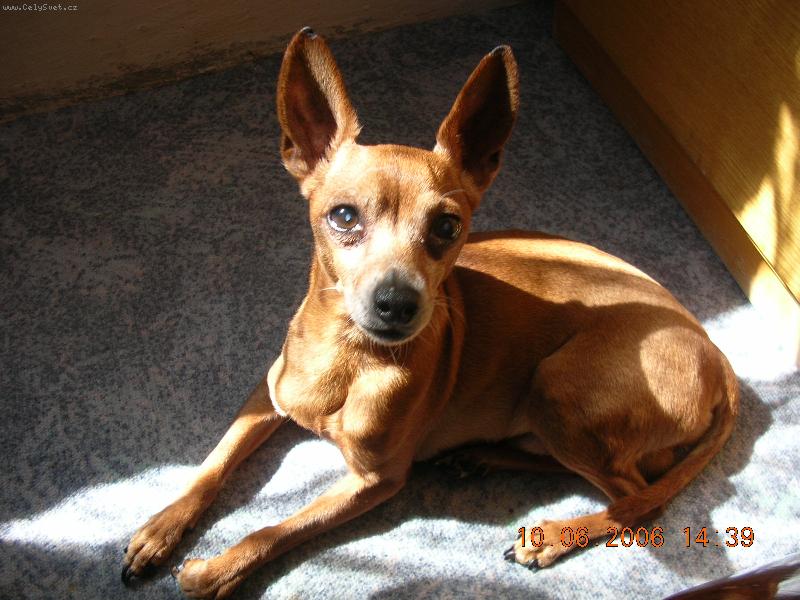 Fotogalerie > PSÍ SVĚT: Pinčové a knírači, molossoidní > Trpasličí pinč(Eva Zemanová)Autor: Eva ZemanováZobrazeno: 1505x (Datum vložení: 17.06.2007 000 21:57) www.CelySvet.cz > |